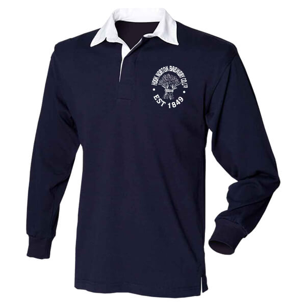 Get rugby ready with our navy rugby shirt! Hook Norton Brewery Co Ltd on on the front.